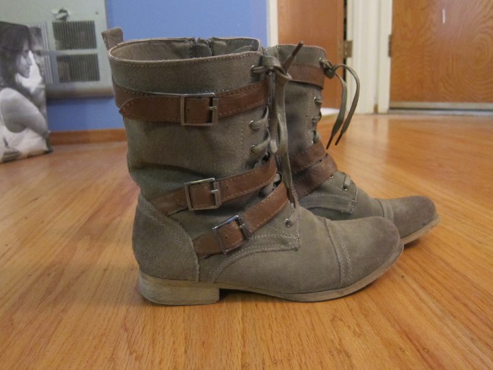 Okay so shortly after buying these, I ended up going to two malls in the area to look for my damn boots. Luckily I found these cheap light brown/tan colored combat boots at Cathy Jean. They didn’t have my regular size but I tried on the next size up and they happened to fit perfectly. I got these for less than $30.