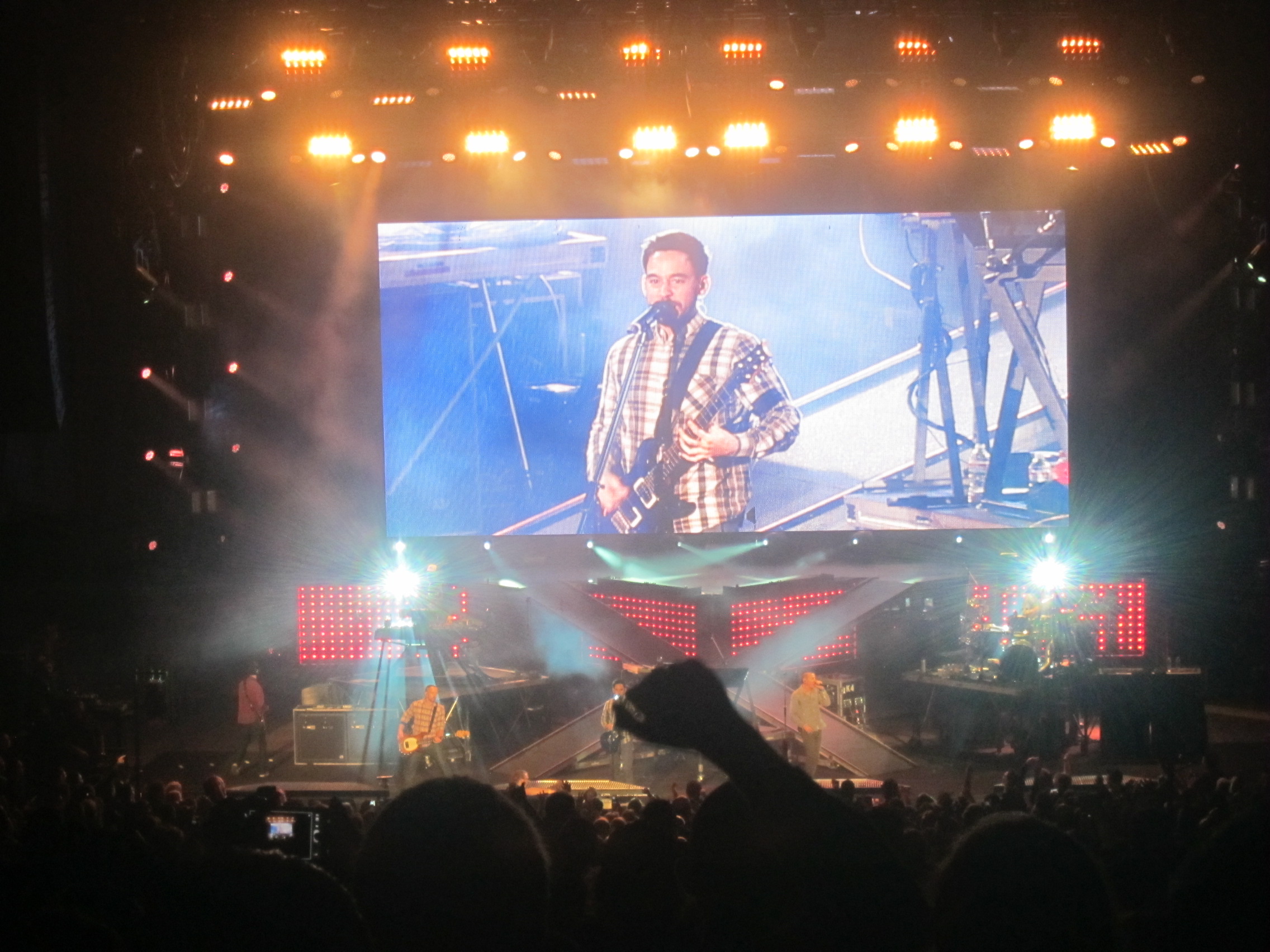 This past Friday I headed to The Shoreline Amphitheater for the Honda Civic Tour featuring Incubus and Linkin Park. I bought tickets for the boyfriends birthday, which was a couple of weeks ago, and was trying to surprise him until he said he was going to try to buy tickets. FAIL. But the surprise lasted pretty long considering I bought the tickets back in June. Anyways, the seats I got were pretty good and right in the middle of the row. The boyfriend had never seen Incubus in concert and I had never seen Linkin Park, so you can imagine how stoked we were. And yes, I just said stoked. I really wanted Incubus to play “I Miss You”, but instead they did a great version of “Promises, Promises” which I got on video. They also did a cover of Lionel Richie’s “Hello” which definitely surprised everyone. Linkin Park was amazing AMAZE BALLS and I felt like I should have been jumping around going crazy, which I totally would have done if 1) I was drunk and 2) maybe if I had lawn seats, but it was a packed house and there wasn’t much space around our seats. Linkin Park was awesome and my throat was hurting by the end of the night. I don’t understand how Chester can scream/sing like that all the time, but DAMN he’s good. AWESOME SHOW!